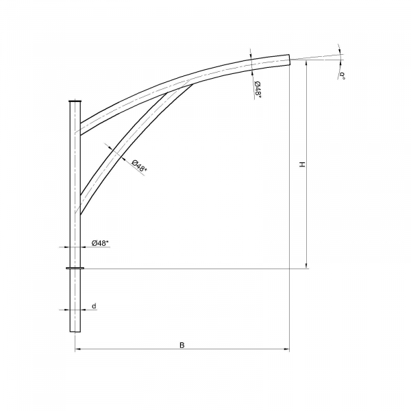 Однорожковые кронштейны К70-1,0-1,5-1-1 предназначен для крепления светильника на трубчатой опоре освещения. Завод опор освещения «Альдекс» изготавливает однорожковые консольные кронштейны из стального проката. Собственное производство позволяет выполнять изделия надлежащего качества и в кратчайшие сроки. Конструкция однорожковых кронштейнов К70-1,0-1,5-1-1. Конструкция консольных однорожковых кронштейнов К70-1,0-1,5-1-1 представляет собой гнутую металлическую трубу заданных размеров.
