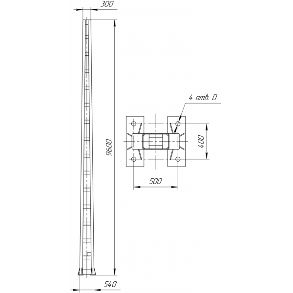МГК1-10-60 — металлическая стойка опоры контактной сети ж/д из гнутого швеллера, цельная (один пояс), высотой 12 метров, изготовленная из низколегированной марки стали С345.