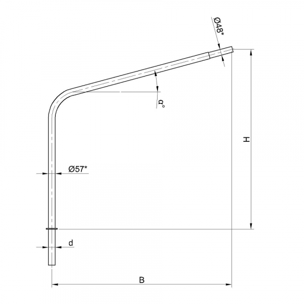 Однорожковые кронштейны К1-2,5-2,5-1-1 предназначен для крепления светильника на трубчатой опоре освещения. Завод опор освещения «Альдекс» изготавливает однорожковые консольные кронштейны из стального проката. Собственное производство позволяет выполнять изделия надлежащего качества и в кратчайшие сроки. Конструкция однорожковых кронштейнов К1-2,5-2,5-1-1. Конструкция консольных однорожковых кронштейнов К1-2,5-2,5-1-1 представляет собой гнутую металлическую трубу заданных размеров.