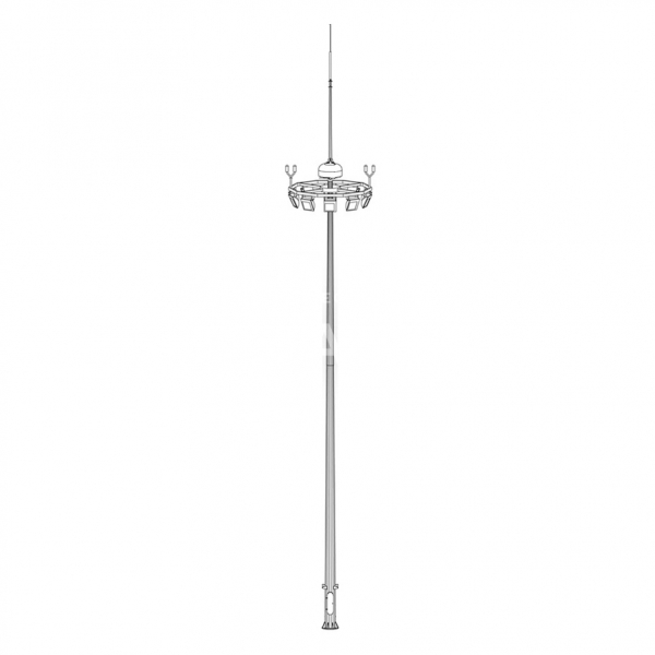 Высокомачтовые осветительные установки высотой 30 метров изготовленные на нашем заводе поставляются в комплектации с мобильной короной, анкерным элементом фундамента, эксплуатационным и монтажным комплектом.